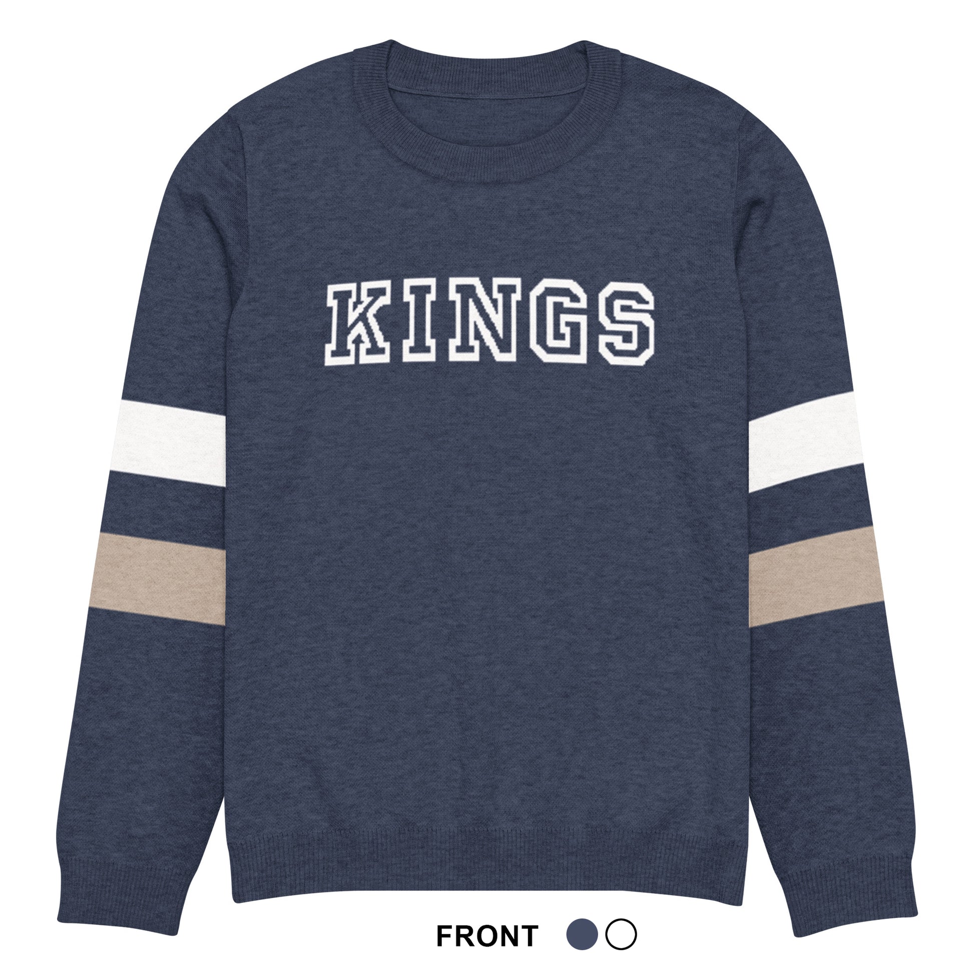This extra-soft, knitted sweater gives the perfect, sporty vibe when you are cheering on your favorite team. Wear it to all of the Kings lacrosse games to show you are the #1 fan. This Kings All-American sweater comes in several different color options and is sure to be a game-day essential with it's classic, vintage style.